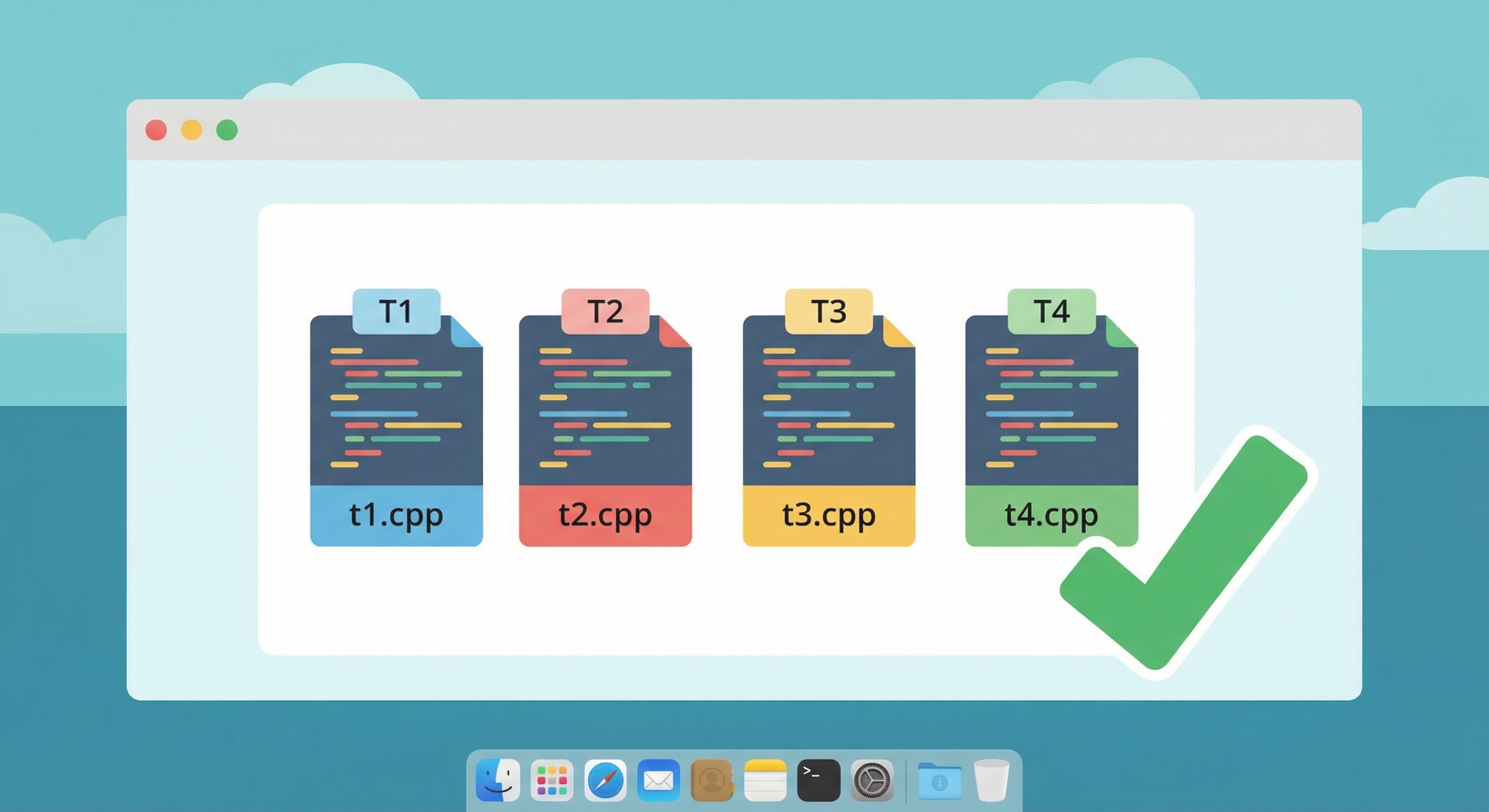t1.cpp~t4.cpp放在同一目录,由监考老师或系统统一打包收取。