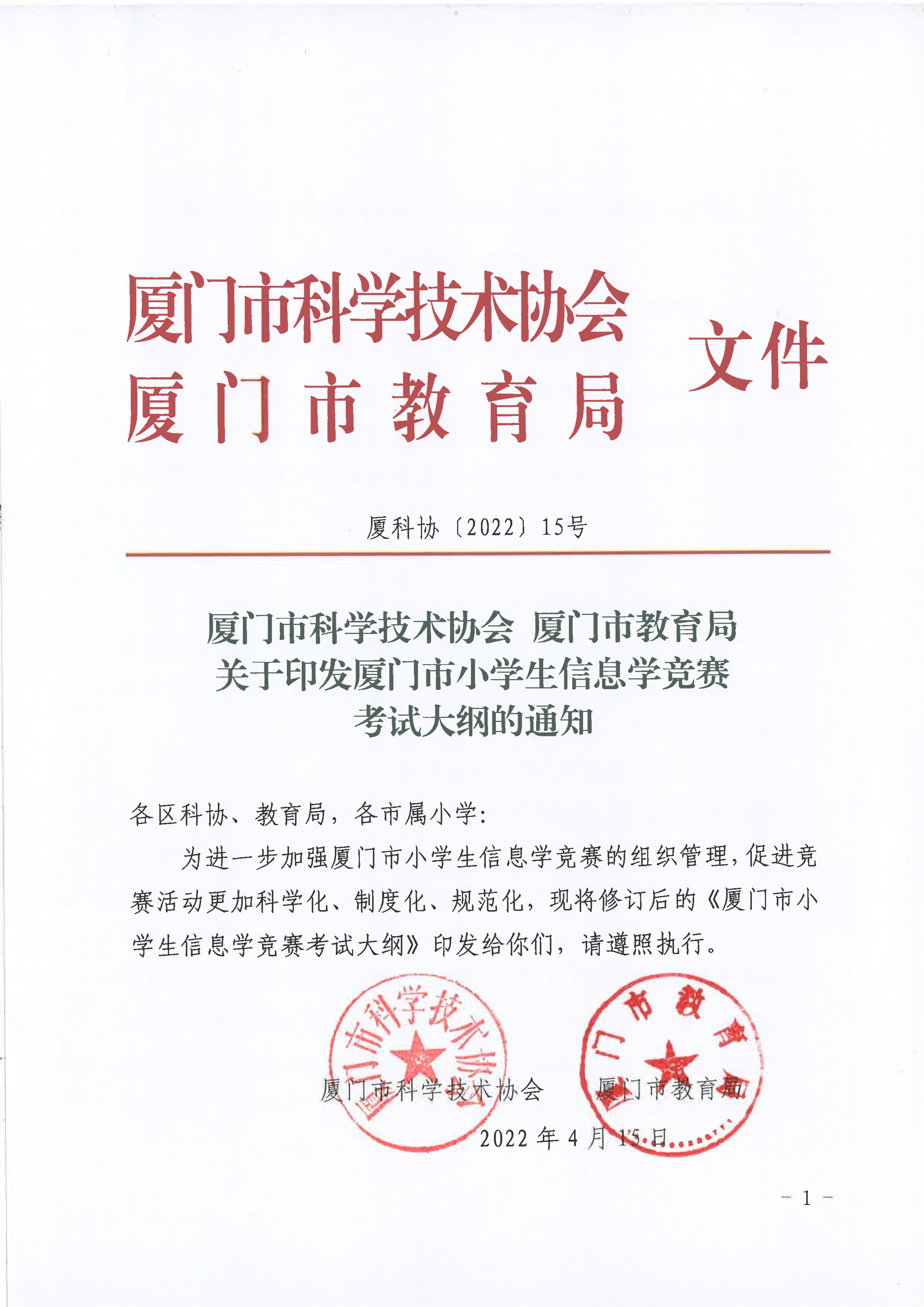 关于 《厦门市小学生信息学竞赛考试大纲》(2022修订版)